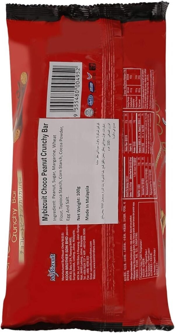 Indulge in the perfect blend of rich chocolate and crunchy peanuts with My Bizcuit Choco Peanut Crunchy Bar. This 100g bar offers a satisfying combination of smooth chocolate and nutty crunch, making it a delightful treat for any time of the day. Made with high-quality ingredients, including 31% peanuts, cocoa powder, and natural flavorings, it delivers a balanced and indulgent taste. Whether you need a quick energy boost or a delicious snack to enjoy with your favorite beverage, this bar is a convenient and flavorful choice. Packed with protein and a crunchy texture, it is the perfect on-the-go snack for peanut and chocolate lovers.